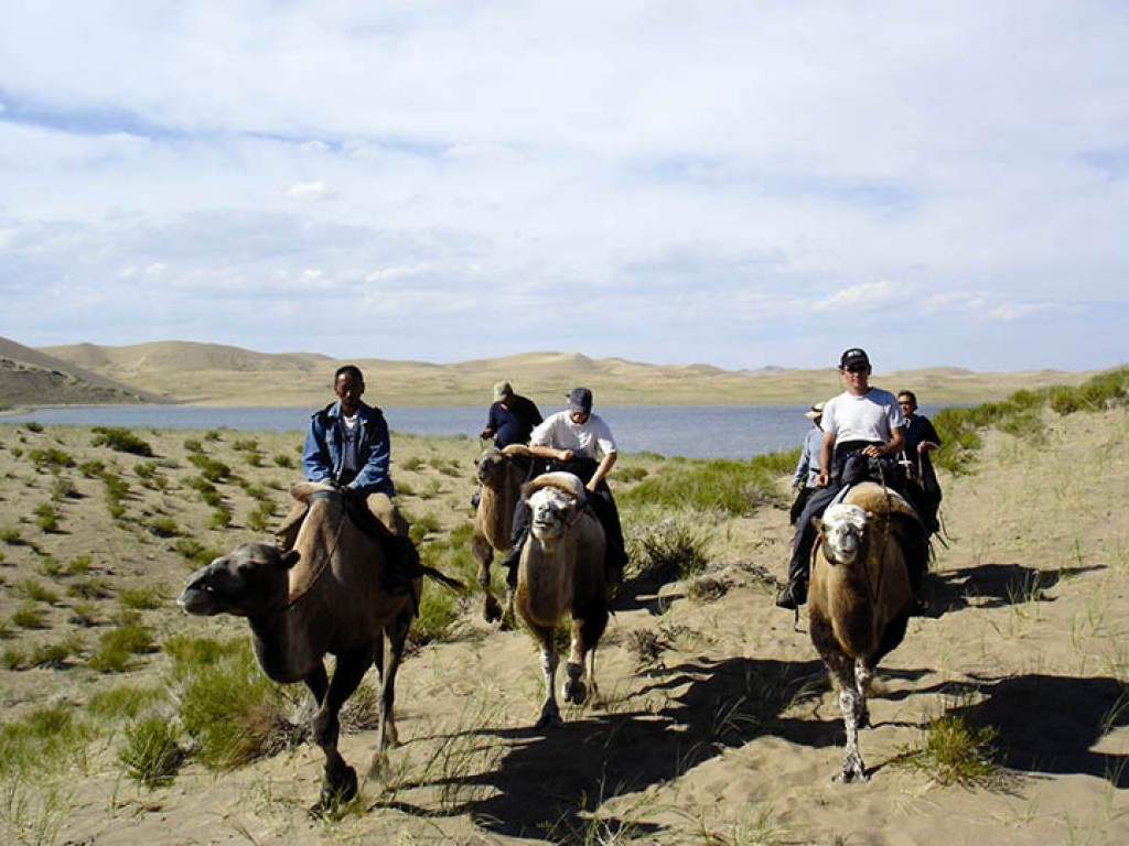 Introduction to the camel ride to the beautiful Lake Ereen, located in a Mongol Els, whose sands along the Zavkhan River and extend over 600 km to Khyargas Lake. Lake Ereen is the subject of a famous Mongolian song, and climb the highest dune to enjoy the view of the entire region and try to do "sing" the descent! During the journey, you can admire the charming little lakes Doroo, Ajig and Budargana. tarted Visit in nomadic family .Bivouac in the sands.